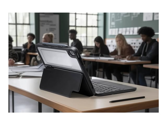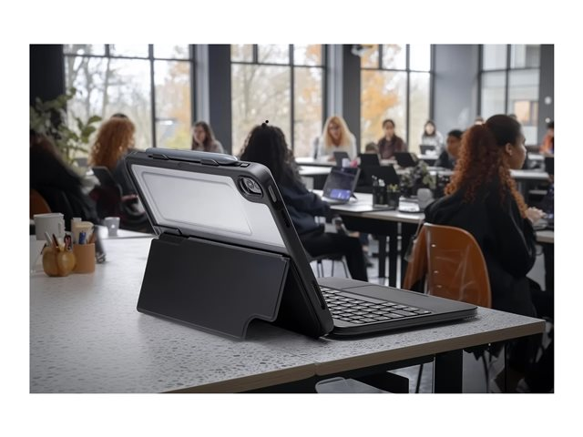 | Egenskaper | Inbyggt utfällbart ställ, stötbeständig, robust, fallskydd upp till 2 m, interlocking key design, Apple Pencil/stylus holder, asset tag window |
