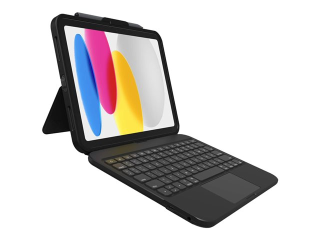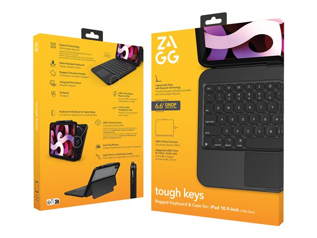 ZAGG Tough Keys - Tangentbord och foliefodral (fodral) - med pekdyna - USB-C - QWERTY - Nordisk - svart tangentbord, svart fodral - brun låda - B2B