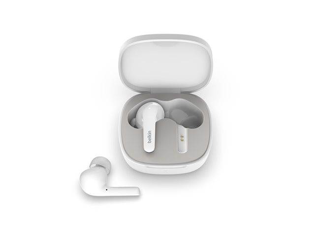 Belkin SoundForm Flow - True wireless-hörlurar med mikrofon - inuti örat - Bluetooth - aktiv brusradering - vit