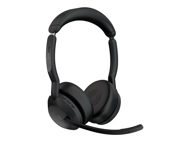 Jabra Evolve2 55 MS Stereo - Headset - på örat - Bluetooth - trådlös - aktiv brusradering - USB-A - svart - med laddningsställ - Zoomcertifierad, Cisco Webex Certified, Optimerat för Microsoft Teams, Alcatel-Lucent-certifierad, Avaya-certifierad, Unify-certifierad, MFi-certifierad, Amazon Chime-certifierad