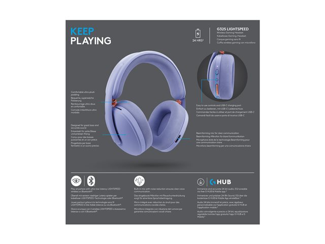 Logitech G G325 - Headset - fullstorlek - Bluetooth / LIGHTSPEED - trådlös - USB-C via Bluetooth-adapter - lila