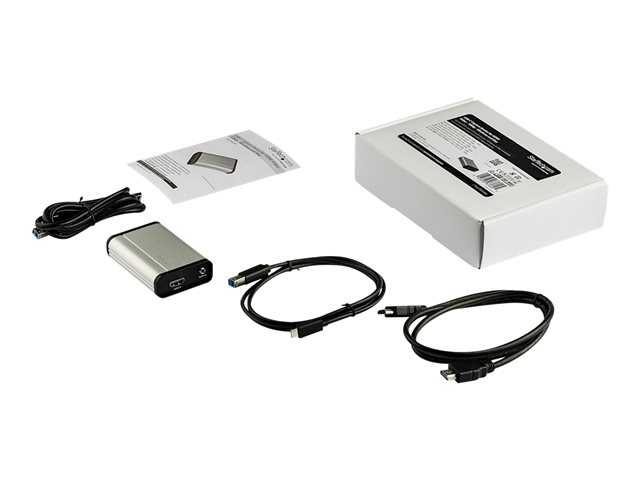 Denna HDMI till USB-videoinspelningsenhet låter dig spela in HDMI-video på din USB-C , USB-A eller Thunderbolt 3-dator och har ett slitstarkt aluminiumhölje så att den kan säkert bäras med din bärbara dator. Enkel att installera, enkel att använda För problemfri inspelning kan du installera HDMI-videoinspelningsenheten genom att enkelt ansluta den till din dator. Inspelningsenheten har USB Video Class (UVC), en videoinspelningsstandard som stöds internt av Mac, Windows och Linux . Till skillnad från andra inspelningsenheter som kräver installation av speciella drivrutiner installeras UVC-baserade enheter automatiskt för en äkta plug-and-play-lösning. Med denna inspelningsenhet är du inte heller begränsad till den medföljande programvaran. Du kan använda alla tredjeparts-programvaror som använder sig av UVC-kompatibla ramverk som Quicktime eller DirectShow . Filma HD-video i 1080p 60 fps Filma HD-video i 1080p 60 fps (bilder per sekund), för att spara innehåll för delning, lagring eller redigering. Spela in möten, presentationer, konferenssamtal eller från säkerhetsutrustning direkt till din dator. Strömma ditt 1080p-innehåll Strömma video över internet med Twitch eller andra tredjeparts-plattformar för videoströmning. Med den medföljande programvaran eller din egna tredjeparts UVC-kompatibla programvara, som Open Broadcaster Software (OBS), kan du livesända video över internet med hjälp av Twitch eller andra tredjeparts-plattformar för videoströmning. UVCHDCAP täcks av StarTech.com 2-årsgaranti och livstidsgaranti på teknisk support.