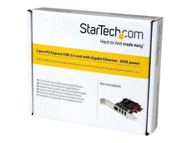 StarTech.com PCI Express USB 3.0-kort med 3 portar + Gigabit Ethernet - Nätverks-/USB-adapter - PCIe 2.0 låg profil - USB 3.0 x 3 + 1000Base-T x 1
