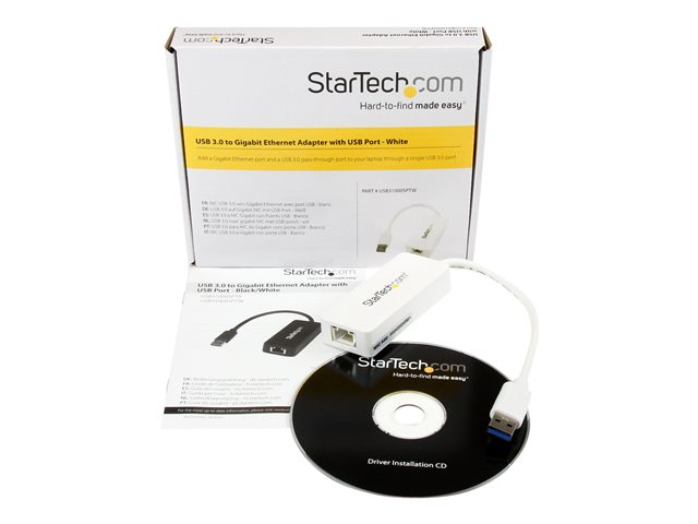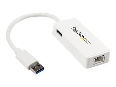 StarTech.com USB 3.0 to Gigabit Ethernet Adapter NIC w/ USB Port (White) - USB 3.0 NIC - 10/100/1000 Mbps USB 3.0 LAN Adapter (USB31000SPTW) - Nätverksadapter - USB 3.0 - Gigabit Ethernet - vit