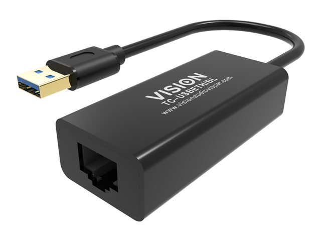 Vision TC-USBETH/BL - Nätverksadapter - USB 2.0 - Gigabit Ethernet x 1 - svart