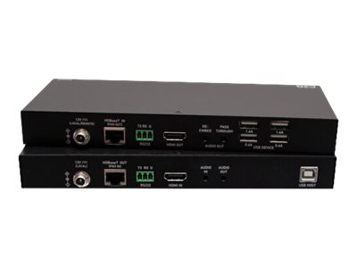 The HDMI HDBaseT + 3.5 mm, USB-B to A, and RS232 over Cat Extender Box Transmitter to Box Receiver - 4K 60 Hz allows a 4K HDMI source to be extended up to 130 feet to a 4K display using a single Cat6a Ethernet cable. This is an ideal solution where USB must be extended alongside HDMI video and audio to interactive whiteboards and displays in conference rooms, classrooms, lecture halls, and many other installations needs that are far beyond the length limitations of standard HDMI cabling.