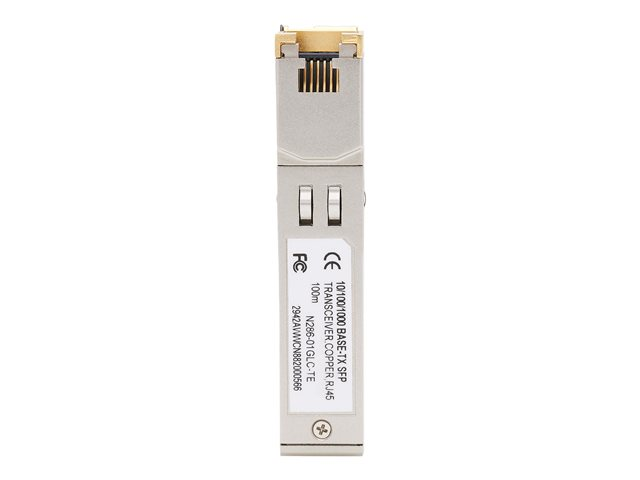 Eaton Tripp Lite-serien introducerar den Cisco-kompatibla GLC-TE SFP-transceivern, en kopparbaserad RJ45 Cat6-modul som är utformad för att förbättra dina nätverksfunktioner. Med stöd för Ethernet 1000Base-TX och en dataöverföringshastighet på 1 Gbps är denna transceivermodul konstruerad för att underlätta sömlös och effektiv nätverkskommunikation över ett avstånd på upp till 100 m (328 ft). Den har dubbelriktade funktioner, en MDI/MDI-X-switch och är hot-swappable, vilket garanterar minimal stilleståndstid och enkelt underhåll. Den uppfyller viktiga standarder som EMI, MSA och RoHS och uppfyller därmed kraven för miljö- och säkerhetsefterlevnad. Oavsett om du uppgraderar ett befintligt nätverk eller sätter upp ett nytt, erbjuder den Cisco-kompatibla GLC-TE SFP-transceivern en pålitlig, hållbar och högkvalitativ lösning för dina nätverksbehov.