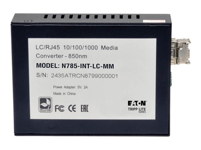 Eaton Tripp Lite Series Gigabit Multimode Fiber to Ethernet Media Converter, 10/100/1000 LC, International Power Supply, 850 nm, 550 m (1,804 ft.) - Fibermediekonverterare - 1GbE - 10Base-T, 100Base-TX, 1000Base-T - RJ-45 / LC multiläge - upp till 550 m - 850 nm