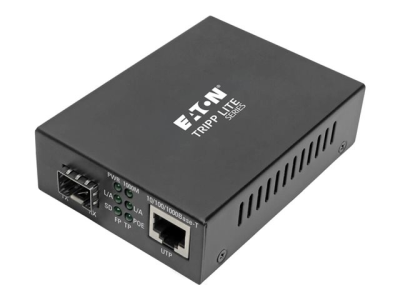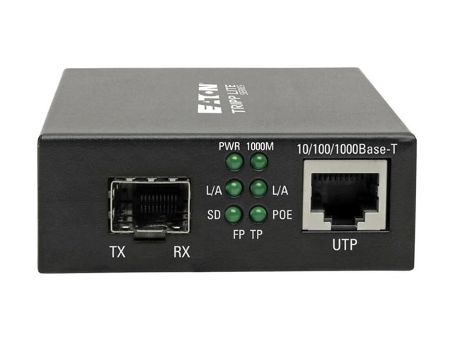 Eaton Tripp Lite Series Gigabit SFP Fiber to Ethernet Media Converter, POE+, International Power Cables, 10/100/1000 Mbps - Fibermediekonverterare - 1GbE - 10Base-T, 100Base-TX, 1000Base-T - RJ-45 / SFP (mini-GBIC) - upp till 100 m - för P/N: N001-025-BK, N201-025-BL, N286-01GLX-SLX, N286-01GSX-MDLC