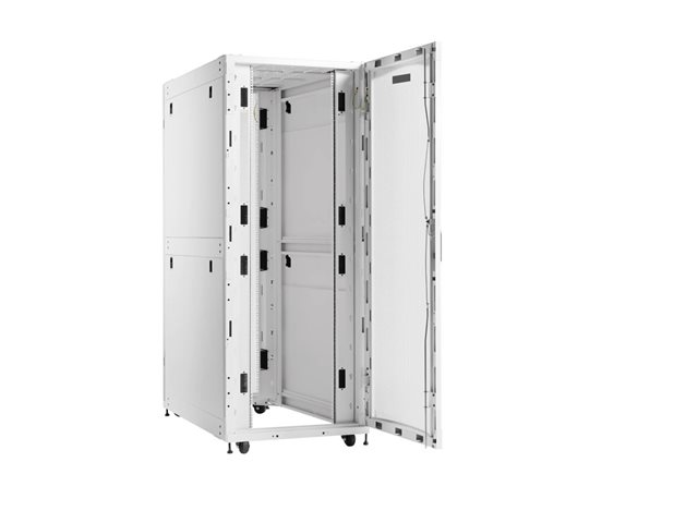 Eaton SmartRack 42U Deep Extra-Wide Heavy-Duty Rack Enclosure Cabinet är utformat för att ge förvaring och skydd för AI-servrar. Detta rackskåp är tillverkat av hållbart stål med pulverlackerad yta och är robust och pålitligt. Med sin djupa och extra breda design erbjuder det gott om utrymme för din utrustning och klarar en viktgräns på upp till 2268 kg. Säkerheten och tillgängligheten förbättras med låsbara funktioner och medföljande nycklar, vilket garanterar trygghet för värdefulla komponenter. Skåpet är utrustat med fyra vertikala monteringsskenor, nivelleringsben och tunga hjul, vilket underlättar organisering och flytt av dina enheter. Den kompatibla designen uppfyller olika standarder, inklusive EIA-310-E, RoHS, UL 2416 och UKCA, vilket säkerställer att den uppfyller kraven. Paketet innehåller flera sidopaneler och lås, samt burmuttrar och nylonbrickor, vilket ger allt som behövs för en säker installation.
