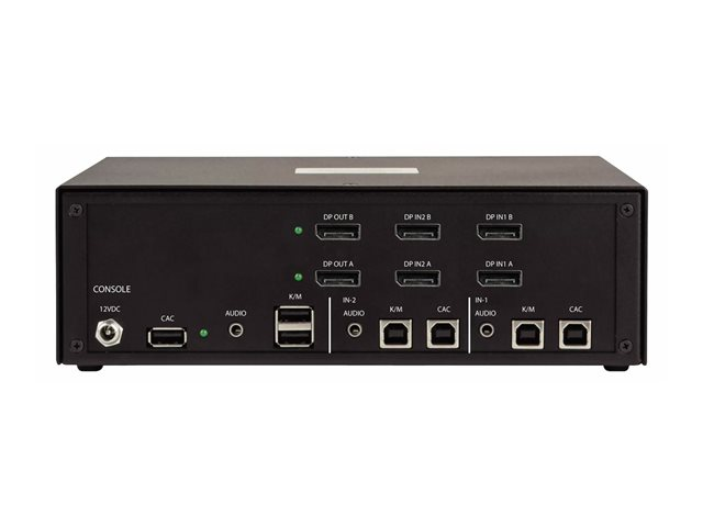 | Gränssnitt | 4 x DisplayPort-ingång hona 2 x USB-ingång Type B common access card (CAC) 2 x tangentbord/mus Type B 2 x ljudinmatning telefon stereo 3,5 mm hona 2 x DisplayPort-utgång 2 x USB-utgång Type A 1 x ljudutmatning telefon stereo 3,5 mm 1 x USB-utgång Type A common access card (CAC), for user |