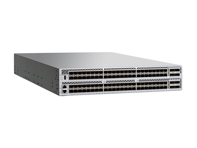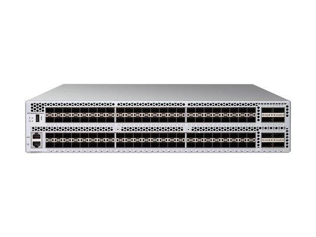 | Gränssnitt | 96 x 32Gb Fibre Channel SFP+ kortvåg 32 x 32Gb Fibre Channel Ports on Demand 1 x hantering (Gigabit LAN) hantering 1 x seriell hantering 1 x USB hantering |