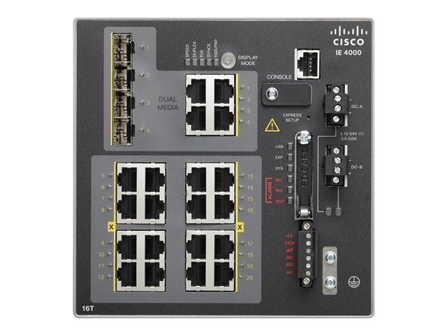 Cisco Industrial Ethernet 4000 Series - Switch - Administrerad - 16 x 10/100 + 4 x kombinations-Gigabit SFP - DIN-skenmonterbar - DC power - TAA-kompatibel IE-4000-16T4G-E