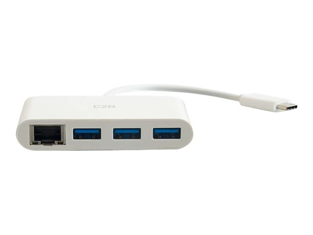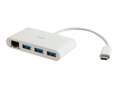 C2G USB C Hub with Ethernet - 3-Port USB Hub - Hubb - 3 x SuperSpeed USB 3.0 + 1 x USB-C + 1 x 1000Base-T - skrivbordsmodell