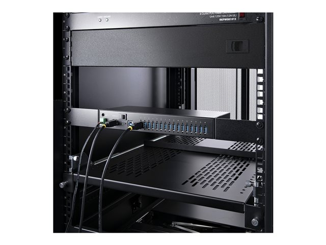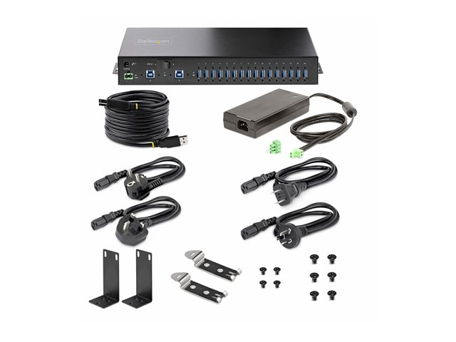 StarTech.com 16-Port Industrial USB 5Gbps Hub with Power Adapter, Metal Enclosure, Mountable, ESD Protection, Terminal Block Power, USB Charging, Dual-Host Switch - TAA - Hubb - 16 x USB 3.2 Gen 1 - skrivbordsmodell, rackmonterbar, väggmonterbar, DIN-skenmonterbar - TAA-kompatibel