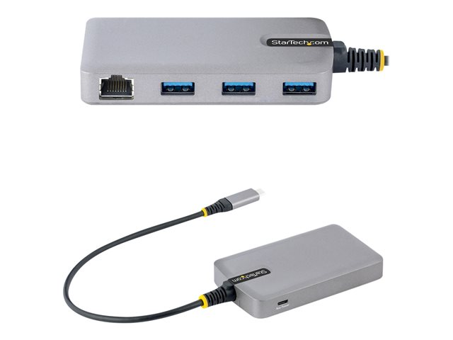 StarTech.com 3-Port USB-C Hub with Ethernet, 3x USB-A Ports, Gigabit Ethernet, USB 3.0 5Gbps, Bus-Powered, USB Type-C Hub w/GbE and 1ft/30cm Long Cable, Portable Laptop USB C Hub Adapter - USB Expansion Hub, RJ45 (5G3AGBB-USB-C-HUB) - Hubb - 3 x USB 3.2 Gen 1 + 1 x micro-USB + 1 x 10/100/1000 - skrivbordsmodell