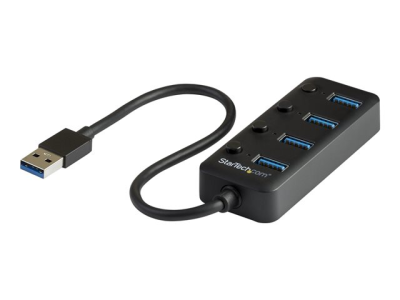 StarTech.com USB 3.0-hubb med 4 portar - USB-A till 4x USB 3.0 Type-A med individuella switchar för portar - USB 3.1/3.2 Gen. 1 med SuperSpeed 5 Gbps - USB-bussdriven - Bärbar - 25 cm ansluten kabel - Hubb - 4 x USB 3.1 Gen 1 - skrivbordsmodell - för P/N: HB30C4AIB