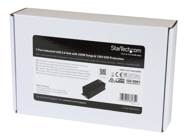 StarTech.com USB 3.0-hubb med 7 portar - Industriell USB-A-hubb i metall med ESD-skydd och 350 W överspänningsskydd - Monterbar på DIN-skena, vägg eller skrivbord - TAA-kompatibel USB-expansionshubb - Hubb - 7 x SuperSpeed USB 3.0 - DIN-skenmonterbar, väggmonterbar - likström - för P/N: ITB20D3250, USB312SAT3CB, USB315CB2M, USBLT1MWS, USBLT2MBR, USBLTM1MBK, USBLTM1MWH