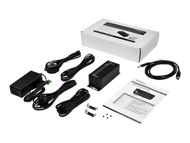 StarTech.com USB 3.0-hubb med 7 portar och nätadapter - Industriell USB-A-hubb i metall med ESD- och 350 W överspänningsskydd - Monterbar på DIN-skena/vägg/skrivbord - Höghastighets USB 3.1 Gen 1 5 Gbps-hubb - Hubb - 7 x USB 3.2 Gen 1 - DIN-skenmonterbar, väggmonterbar - TAA-kompatibel - för P/N: ITB20D3250