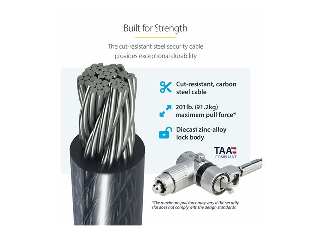 StarTech.com 25-Pack Universal Laptop Lock 6.6ft (2m), Master Keyed Locking Cable, Computer Security, Compatible w/Noble Wedge/Nano/K-Slot, Anti-Theft Cut-Resistant Cable - Lås för säkerhetskabel - svart & silver - 2 m - TAA-kompatibel (paket om 25) UNIVMK25-LAPTOP-LOCK