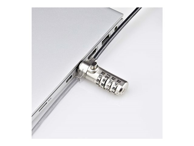 StarTech.com Slim Lock K-Slot Compatible, 6.6ft Combination Locking Cable - Lås för säkerhetskabel - svart & silver - 2 m - TAA-kompatibel SSTDC4D-LAPTOP-LOCK