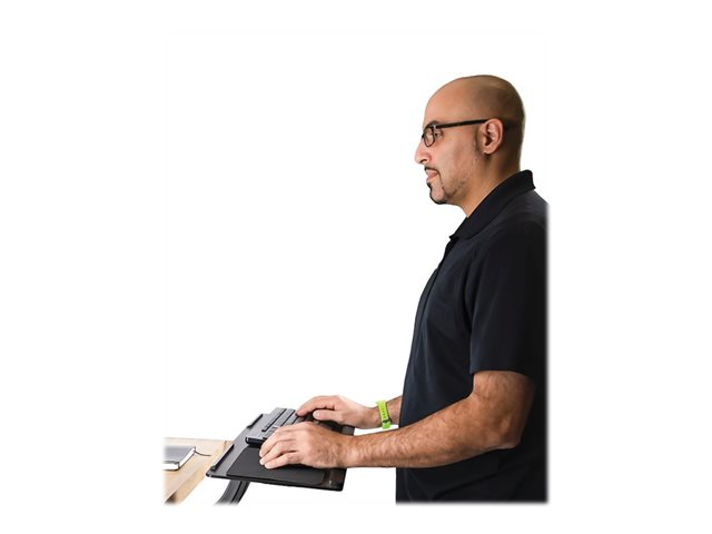 | Egenskaper | Inbyggt handledsstöd, lutningsjustering +15° till -13°, justerbar höjd 340 mm, vridbar 180 grader, kan dras ut till 470 mm, kanter förhindrar att den glider av, integrerad kabelhantering |