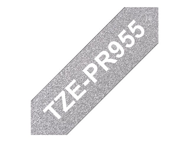 Brother TZe-PR955 - Vit utskrift på premium, glitter silver - Rulle ( 2,4 cm x 8 m) 1 kassett(er) bandlaminat - för Brother PT-H110, H200; P-Touch PT-D210, D800, E550, H110, H200; P-Touch Cube Pro PT-P910