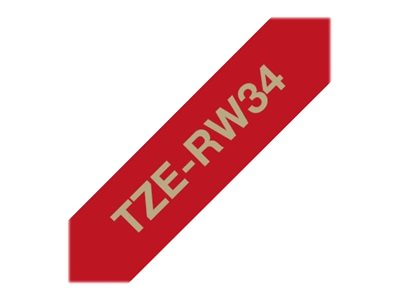 Brother TZe-RW34 - Guld på vinrött - Rulle (1,2 cm x 4 m) 1 kassett(er) bandtejp - för Brother PT-D600, H110; P-Touch PT-D450; P-Touch Cube PT-P300; P-Touch Embellish PT-D215