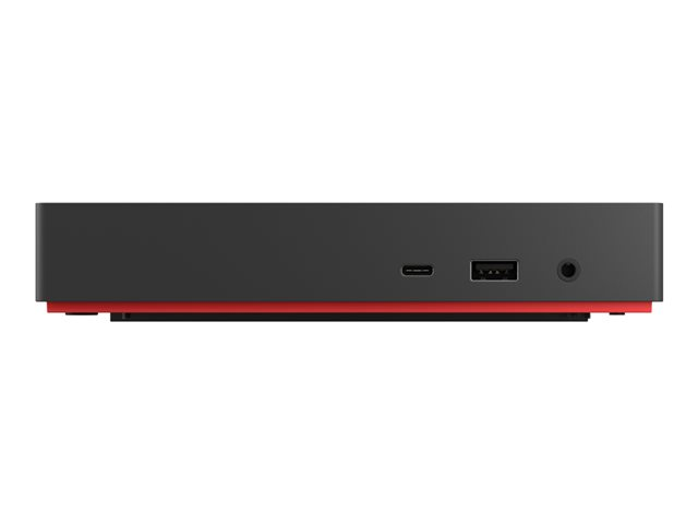 Lenovo ThinkPad Universal USB-C Smart Dock - ThinkSmart Edition är utformad för mångsidiga anslutningsmöjligheter och effektiv produktivitet. Med en rad portar, inklusive USB 3.2 Gen 2, HDMI och DisplayPort, rymmer denna dockningsstation olika enheter och kringutrustning, så att användarna kan utöka sin arbetsyta. Dockningsstationen har stöd för dubbla skärmar, vilket är perfekt för multitasking-proffs som behöver förbättrade visuella upplevelser på flera skärmar. Dockningsstationen är utrustad med en 2 m lång extern USB-C till USB-C-kabel som ger tillförlitliga anslutningar. Den tillhandahåller viktiga gränssnitt som Ethernet och ljud och ger upp till 135 watt ström via strömadaptern för att ladda kompatibla enheter. Dessutom säkerställer funktioner som Kensington-säkerhetslås och två separata lås att både dockan och anslutna enheter förblir säkra, vilket ökar sinnesfriden för användarna.