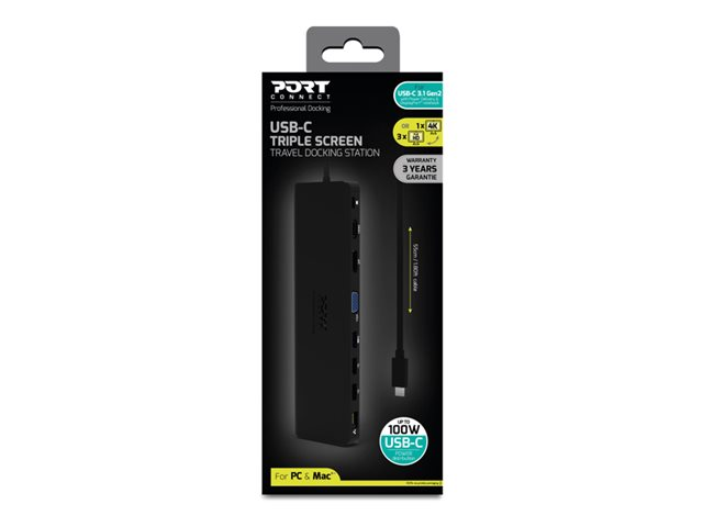 PORT connect TRIPLE SCREEN TRAVEL - Dockningsstation - USB-C 3.1 Gen 2 - DP, HDMI, VGA - 1GbE