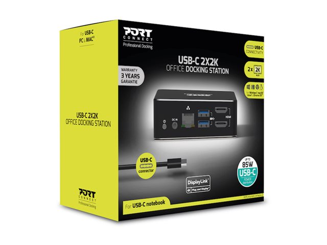 PORT connect USB-C & USB-A Dual Video Docking Station 2 X 2K - Dockningsstation - USB-C / USB 3.0 - 2 x HDMI - 1GbE - 100 Watt