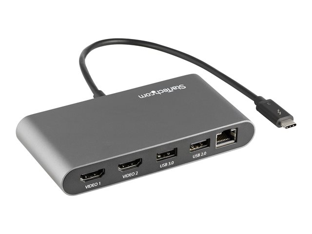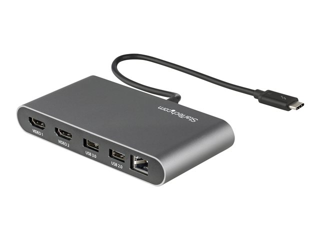 StarTech.com Thunderbolt 3 Mini Dock - Portable Dual Monitor w/HDMI 4K 60Hz - 2X USB-A Hub (3.2/2.0), GbE - 28cm Cable - TB3 Multiport Adapter - Mac/Windows - Upgraded Version of TB3DKM2HD (TB3DKMHDL) - Dockningsstation - Thunderbolt 3 - 2 x HDMI - 1GbE