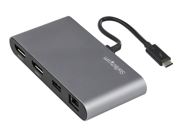 StarTech.com Thunderbolt 3 Mini Dock - Portable Dual Monitor w/ DP 4K 60Hz - 2X USB-A Hub (3.2/2.0), GbE - 28cm Cable - TB3 Multiport Adapter - Mac/Windows - Upgraded Version of TB3DKM2DP (TB3DKMDPL) - Dockningsstation - Thunderbolt 3 - 2 x DP - 1GbE
