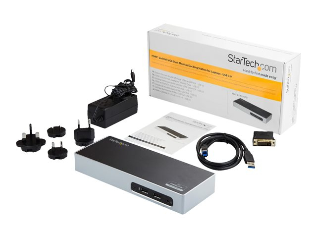 StarTech.com USB 3.0 Docking Station, Dual Monitor Laptop Docking Station with HDMI & DVI/VGA Video, 6-port USB 3.1 Gen 1 5Gbps Hub, GbE, Audio, Universal USB Type-A Dock, Windows & Mac - Dual Display Dock (DK30ADD) - Dockningsstation - USB - DVI, HDMI - 1GbE - för P/N: DK30A2DH, SVA20N2NEUA