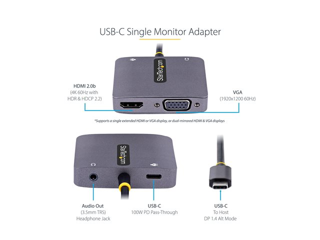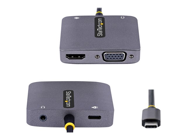 StarTech.com USB C Video Adapter, USB C to HDMI VGA Multiport Adapter w/ 3.5mm Audio Output, 4K 60Hz, HDR, 100W PD 3.0, USB C Monitor Adapter for Laptop, Thunderbolt 3/4 Compatible - USB C Display Travel Adapter (122-USBC-HDMI-4K-VGA) - Dockningsstation - USB-C / Thunderbolt 3 / Thunderbolt 4 - HDMI, VGA