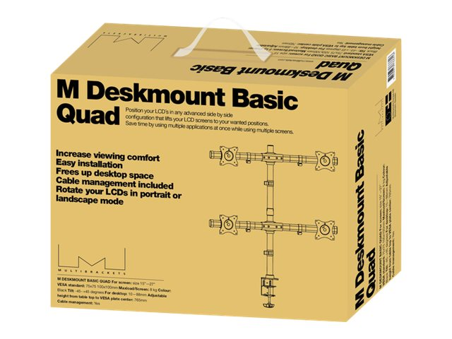 Multibrackets M Deskmount Basic Quad - Monteringssats (montering på skrivbord) - för 4 LCD-bildskärmar - stål, höggradig aluminium - svart - skärmstorlek: 15"-27" - klämma, monterbar