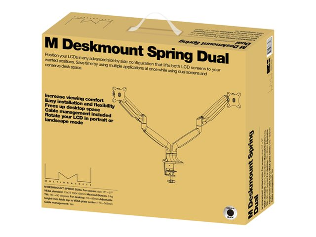 Multibrackets M Deskmount Spring Dual - Monteringssats (montering på skrivbord) - för 2 LCD-bildskärmar - stål, höggradig aluminium - svart - skärmstorlek: 15"-27"
