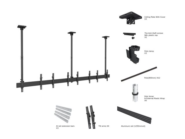 Multibrackets M Pro MBC4X1U - Fäste - aluminium, stål - svart - skärmstorlek: 32"-65" - takmonterbar