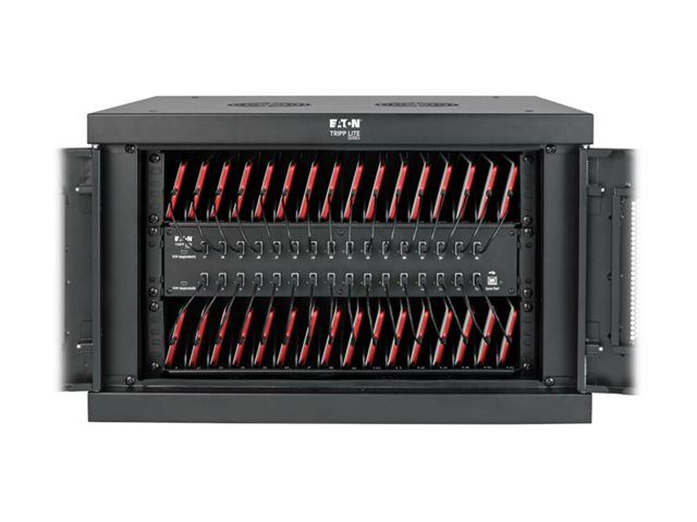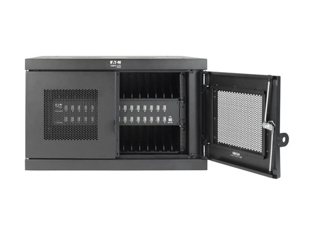 Eaton Tripp Lite Series 32-Device USB Charging Station Cabinet with Sync for Smartphones, Wall Mount and Desktop Options, 230V, BS1363 to C13 Plug, Black - Laddare för flera enheter skåp - med kretsbrytare - på bord, väggmontering - svart