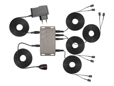 Förpacknings innehåll | IR-mottagare, kontrollenhet, 4 IR-sändare |