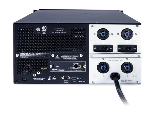 APC Smart-UPS - UPS (kan monteras i rack) - AC 208 V - 4 kW - 5000 VA - 1-fas - Ethernet 10/100, RS-232 - utgångskontakter: 4 - 5U - svart