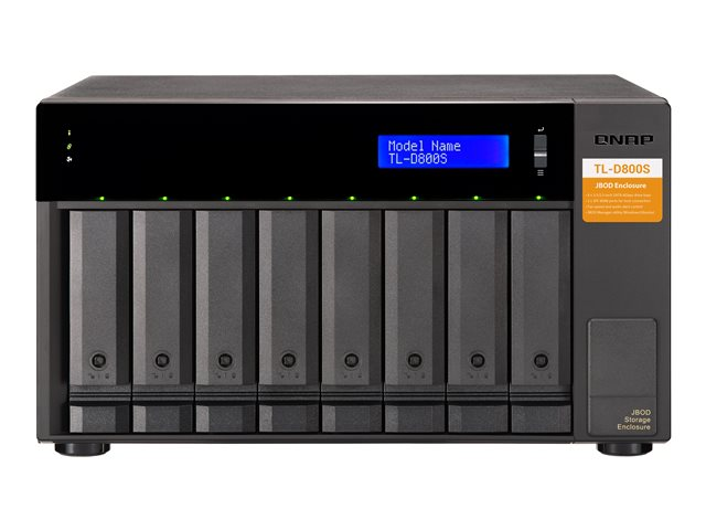 JBOD-lagringskabinettet TL-D800S gör det möjligt att säkerhetskopiera och utöka QNAP NAS och datorer och servrar med Windows och Ubuntu. TL-D800S har åtta 3,5-tums SATA 6Gb/s enhetsfack och har ett QXP PCIe-kort för att ansluta kabinettet med kabeln SFF-8088 (eller SFF-8644). Det tillhandahåller tillförlitlig läs/skrivprestanda för jämna lagrings- och säkerhetskopieringsuppgifter.