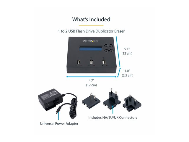 StarTech.com 1:2 Fristående USB-duplikator och -rensare för flashminnen - USB-enhetsduplikator - 2 fack - för P/N: SVA5H2NEUA USBDUP12