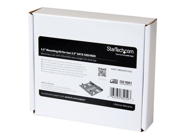 StarTech.com Dubbelt 2,5" till 3,5" HDD-fäste för SATA-hårddiskar – 2,5" till 3,5" fäste för monteringsfack för 2 enheter - Adapter för lagringsfack - 3,5 till 2,5 tum - stål - för P/N: 25S22M2NGFFR, S322M225R, SAT2M2NGFF25, SAT32M225, SAT32MSAT257, ST521PMINT