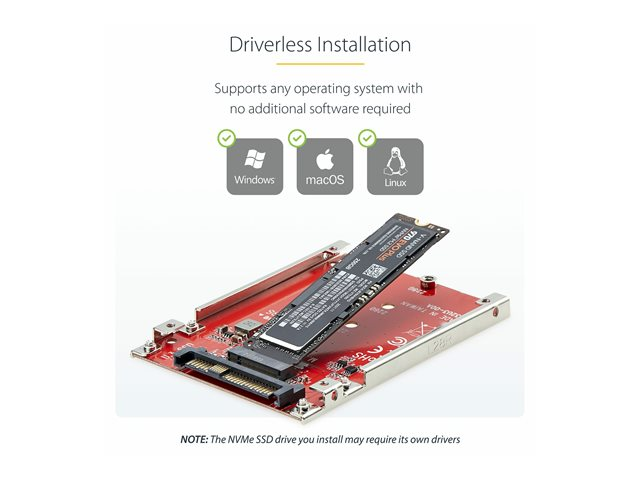 StarTech.com M.2 to U.3 Adapter, For M.2 NVMe SSDs, PCIe M.2 Drive to 2.5inch U.3 (SFF-TA-1001) Host Adapter/Converter, TAA Compliant - 2.5" Drive Form Factor (1M25-U3-M2-ADAPTER) - Gränssnittsadapter - M.2 - M.2 NVMe Card / PCIe 4.0 (NVMe) - U.3 - röd - TAA-kompatibel