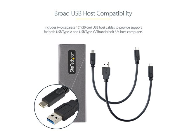 StarTech.com USB-C 10Gbps to M.2 NVMe or M.2 SATA SSD Enclosure, Tool-free M.2 PCIe/SATA NGFF SSD Enclosure, Portable Aluminum Case, USB Type-C & USB-A Host Cables, For 2230/2242/2260/2280 - Works w/ Thunderbolt 3 (M2-USB-C-NVME-SATA) - Förvaringslåda - M.2 - M.2 Card (PCIe NVMe & SATA) - USB-C 3.2 (Gen 2) - rymdgrå