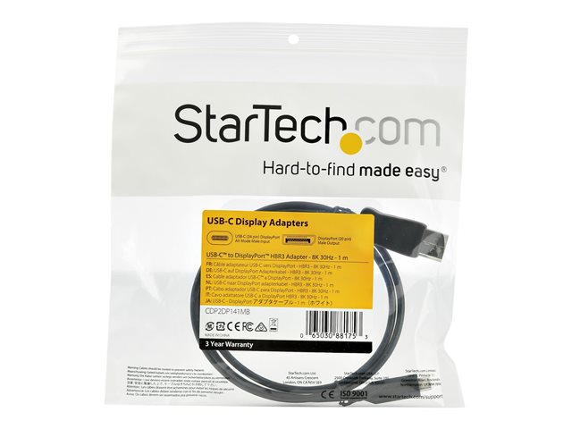 StarTech.com 3.3ft/1m USB C to DisplayPort 1.4 Cable, 4K/5K/8K USB Type-C to DP 1.4 Alt Mode Video Adapter Converter, HBR3/HDR/DSC, 8K 60Hz DP 1.4 Monitor Cable for USB-C and Thunderbolt 3 - USB-C to DP 8K Cable (CDP2DP141MB) - Extern videoadapter - USB-C - DisplayPort - svart - för P/N: TB4CDOCK CDP2DP141MB