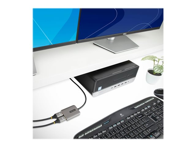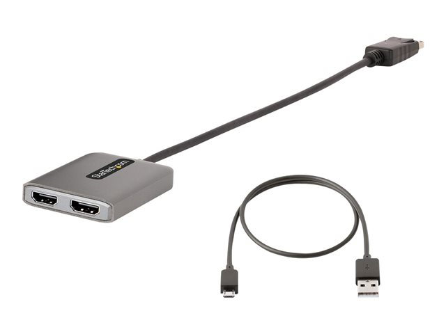 StarTech.com DP to Dual HDMI MST HUB, Dual HDMI 4K 60Hz, DisplayPort Multi Monitor Adapter with 1ft (30cm) Cable, DP 1.4 Multi Stream Transport Hub, DSC | HBR3, DP to 2x HDMI Ports - DP to HDMI Splitter (MST14DP122HD) - Videokort - DisplayPort hane till HDMI hona - grå