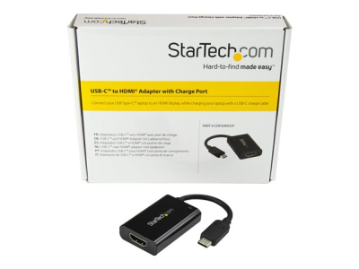 StarTech.com USB C till HDMI 2.0-adapter med strömförsörjning - videokonverterare USB Type-C till HDMI-skärm för 4K vid 60 Hz - port som ger strömförsörjning på 60 W för direktladdning - Thunderbolt 3-kompatibel - svart - Videokort - USB-C hane till HDMI, USB-C (enbart ström) hona - svart - USB Power Delivery (60W), 4K60 Hz (4096 x 2160) stöd