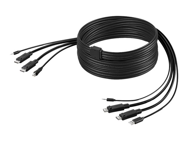 Belkin Secure KVM Combo Cable - Kabel för tangentbord/mus/video/ljud - TAA-kompatibel - USB, minijack, DisplayPort (hane) till mini-phone stereo 3.5 mm, USB typ B, DisplayPort (hane) - 3.04 m - svart